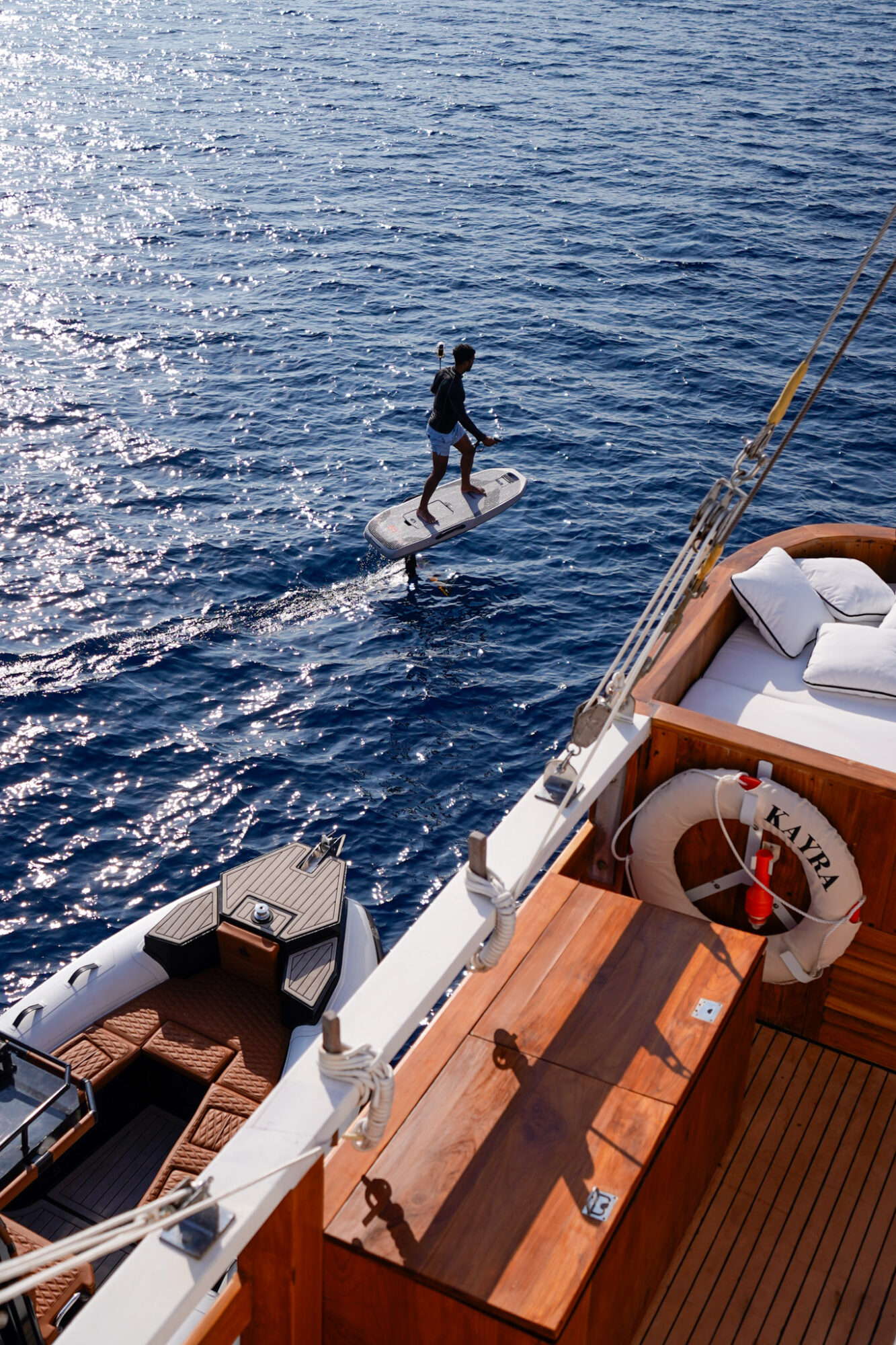 Step into KAYRA, where refined luxury, holistic wellness, and Indonesia’s raw natural beauty come together for an exceptional yachting journey. Created to enhance every moment at sea, KAYRA is a haven of calm, renewal, and understated indulgence. The master suite features breathtaking 270-degree panoramic views, complemented by a dedicated spa room, gym, and sauna just steps away—an intimate sanctuary for complete relaxation. From the sun deck perched above the captain’s bridge to the elegant top-deck lounge, bar, and Jacuzzi, every detail aboard KAYRA is meticulously designed to celebrate wellbeing and elevate the art of unwinding on the ocean.